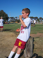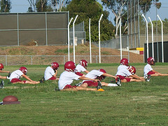 You think he would be shell shocked. Sit on a plane for over 15 hours on Sunday, then onto the practice field Monday. He is lucky though. Last year, he returned to the horrible humid heat wave that blistered the summer for about 3 weeks. Yesterday was gorgeous. High 70s by the time they took the field at 5:00pm, and breezy. Sure, they worked so hard he was sweating after the first round of drills, but it was nothing like last year. Sportsboy was fine other than a slight muscle strain which he of course did at the Boys & Girls Club during the day while playing basketball. He came off limping a few times at the break, but was OK. He has been instructed today to SIT! Play pool, play foosball, play on the computers, do art, but DO NOT play basketball! We’ll see how he listens 🙂