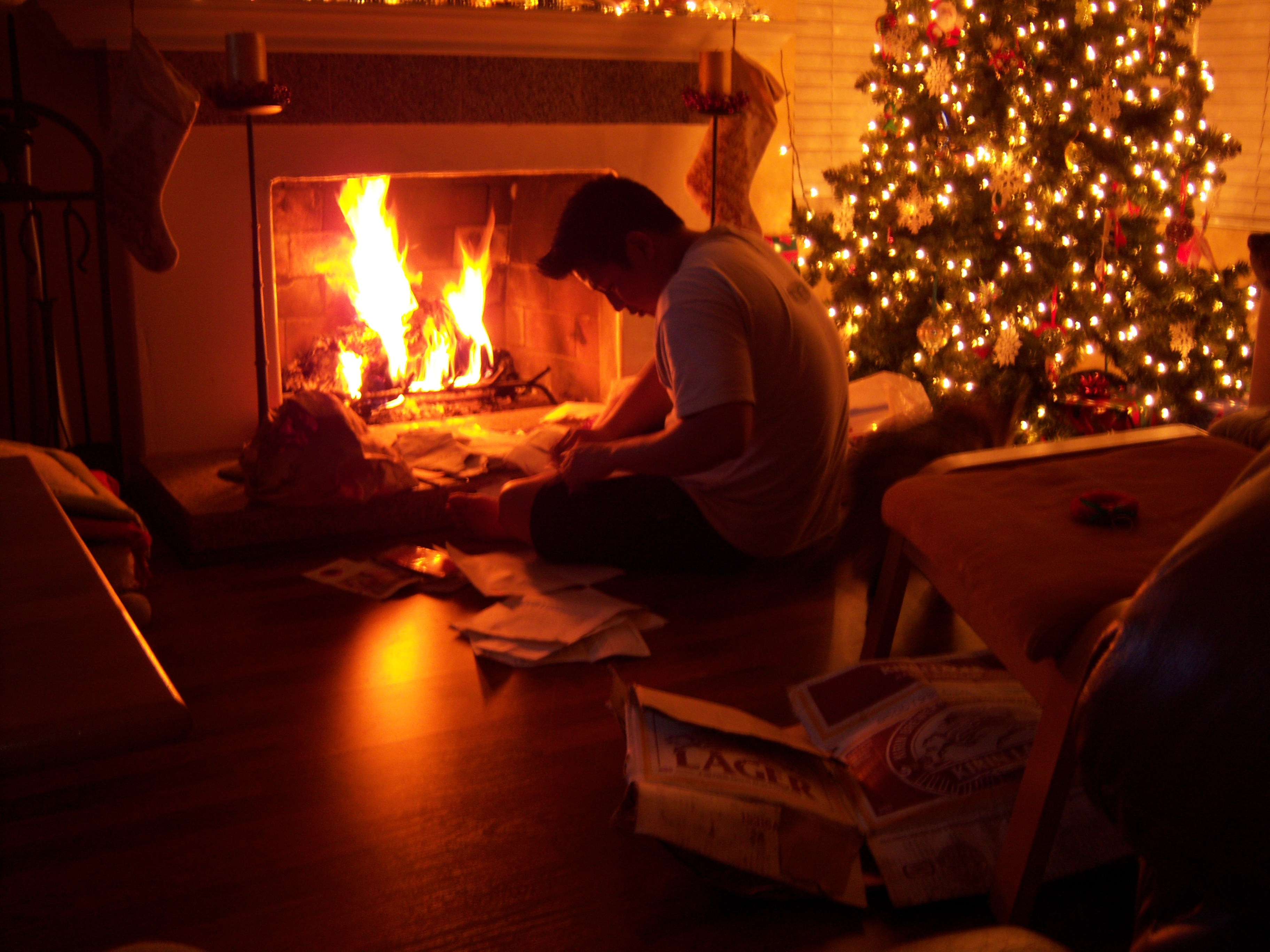 Christmas Eve bonfire err, lovely fire in the fireplace with SP providing some kindling while I watched football.