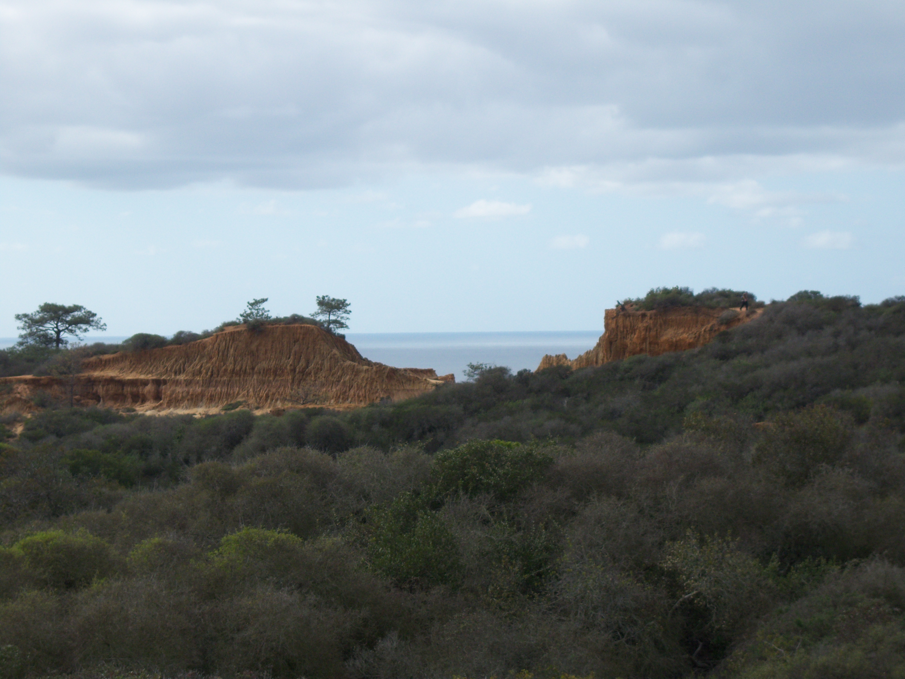 Photos from our 1/29/08 hike which was supposed to be at the Rancho Penasquitos Trail, but that park was closed I assume due to high creek levels from the rain. We will attempt that site again Saturday. So we went to the place we know best, Torrey Pines Reserve. Parked at work and walked in from the southern end along the golf course to take the Broken Hill Trail connecting to the Beach Trail to Flat Rock and then back up. Perfect post-rain chilly day. Some mud and puddles on the trails, but overall just fabulous. Heard and saw more bird life than I normally do. This is going to be picture heavy so click through after this first one to see more. Here is Broken Hill: