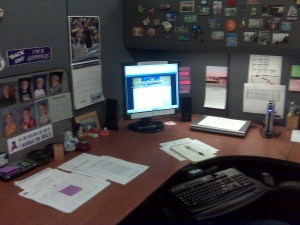 Dee – you are so sharp!! Yes! That is exactly what those are 🙂 Gotta find some way to decorate the old cube area :-> Oh, and to those saying it is so tidy – I *may* have pushed the piles of paper onto the side out of view before taking that picture, ok? Fell better now?