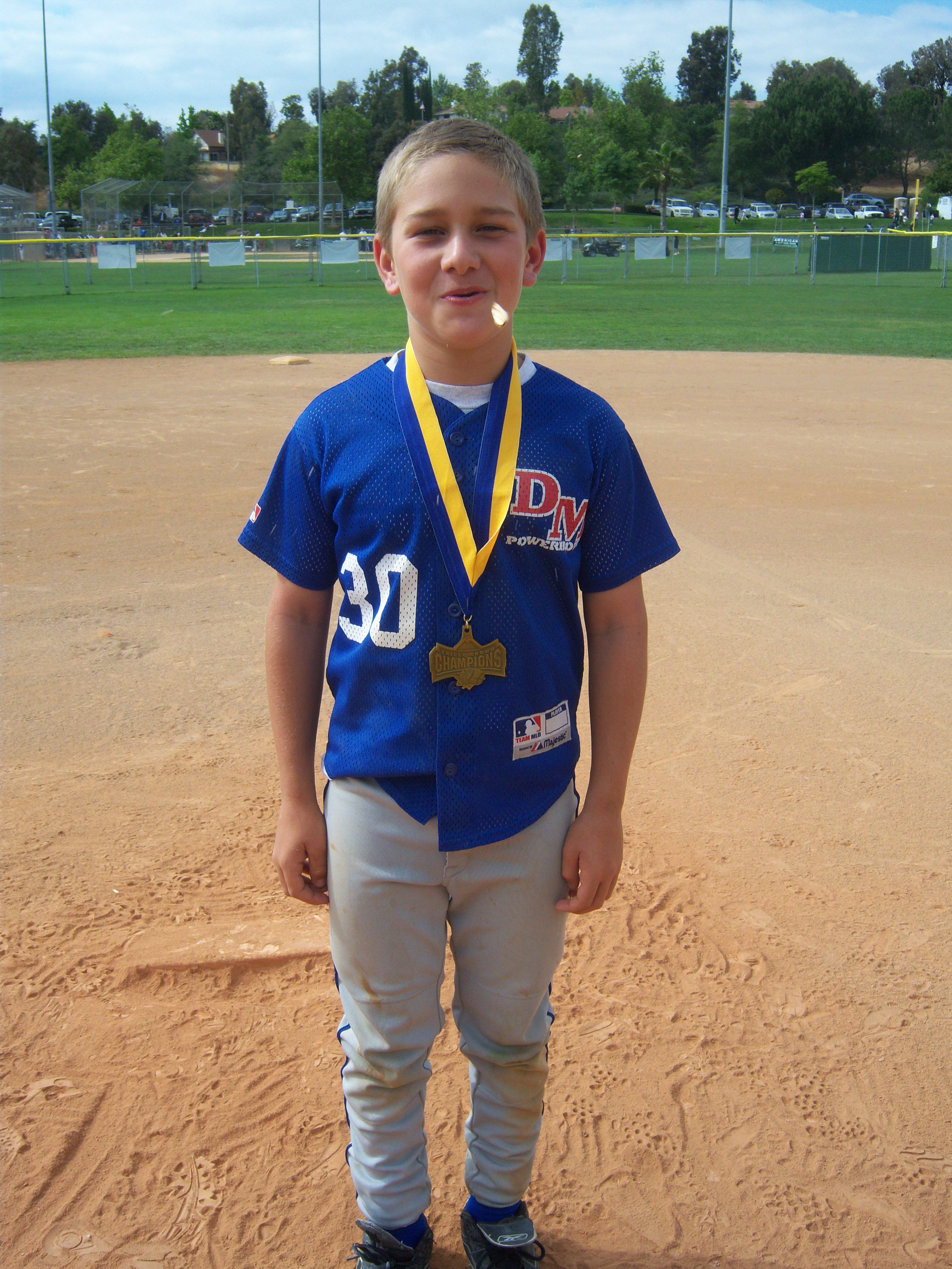 Tournament Championship #2 on the season. Ending the year in grand style! A game ending home run in the semi-final game to push the team into the finals and then a game ending grand slam in the final. For the first time in 5 years of tournaments at this same location every Memorial Day weekend, the team ended with a victory. My little champion played well, kept his head up when things did not go well, and ended the day happily spitting a sunflower seed at me as I took this photo. Sigh….More photos below, including one of the team’s #1 fans: