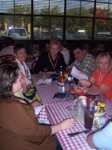 See the couple at the head of the table? Sweet Prince and I met them in Nov ’05 on our second Mexican cruise. I wore my DailyKos shirt to lunch one day and she spotted it and struck up a conversation. Turns out she’s Bloomer101 on the site! And this year they made the trek to the convention. Crazy huh?