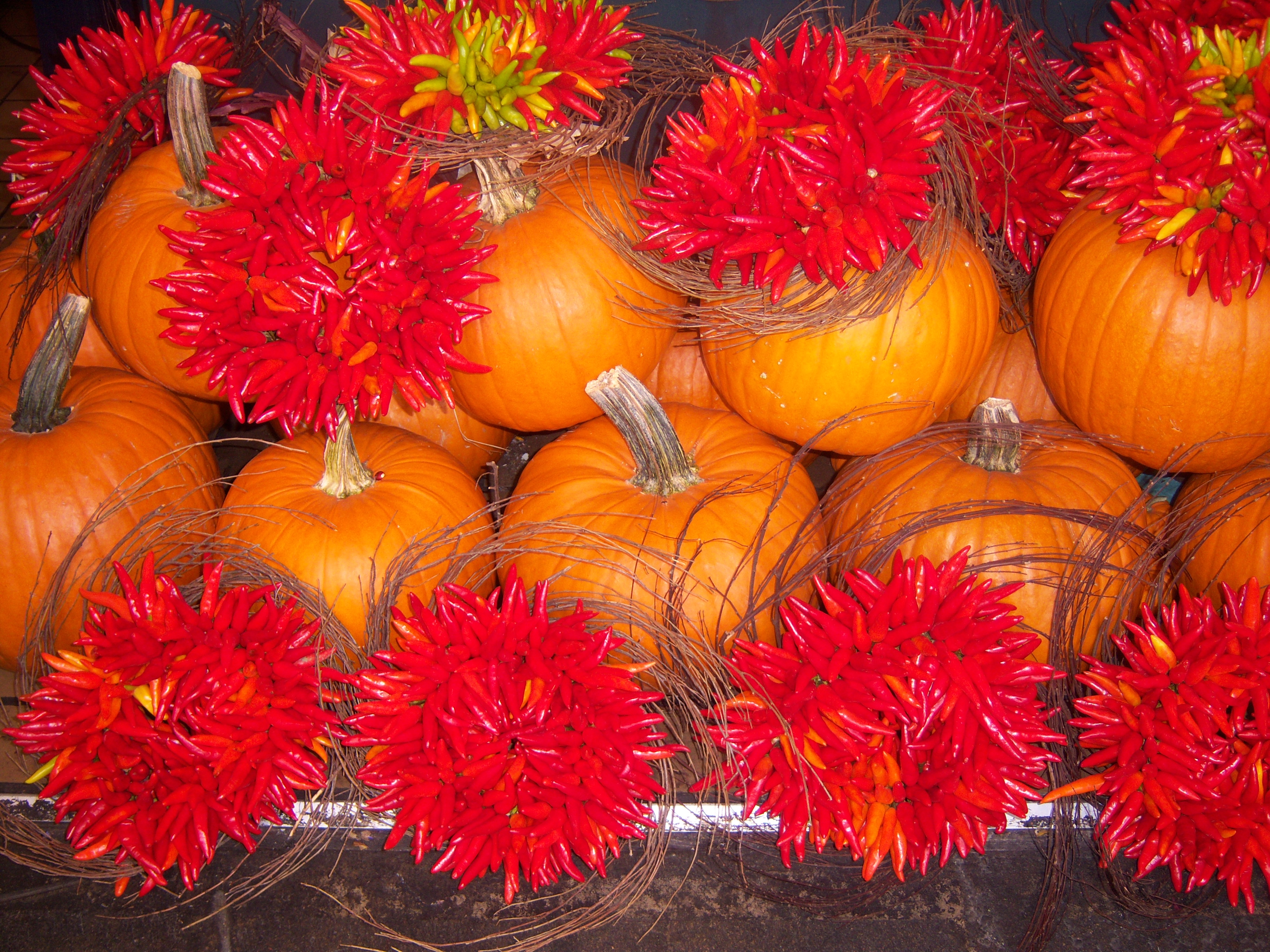 Pumpkins and peppers from the farmers market. In keeping with the fall theme ๐Ÿ™‚ I toyed with putting that up in my blog banner but then realized that I better not mess with the football team’s mojo since they are on an undefeated roll again.