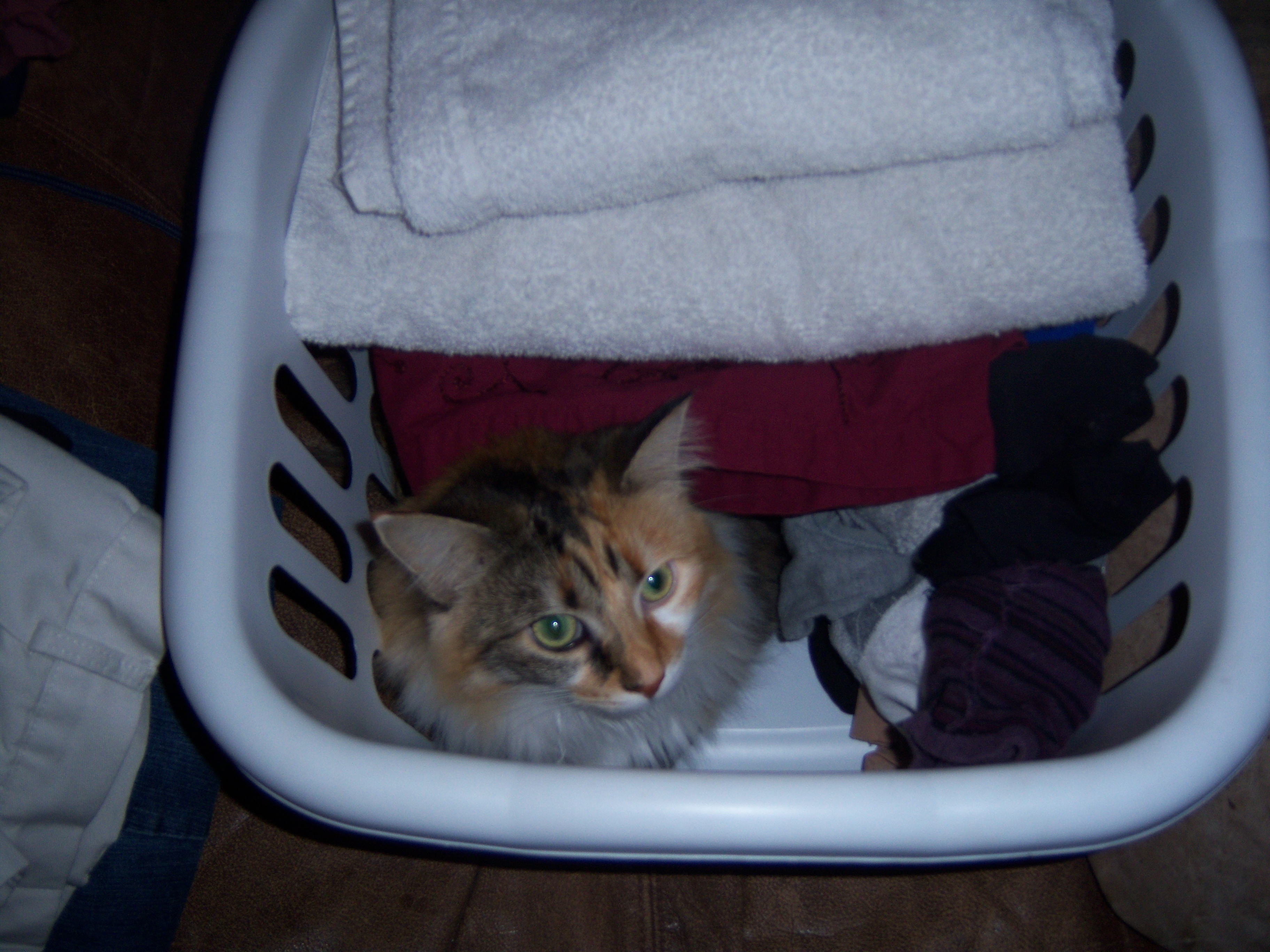 Your “Laundry Helper” looks almost identical to my Molly! She loves to help me keep the clean laundry from falling off the pile by sitting on top of the pile. Of course, it’s usually dark clothes that has has to be rewashed to get the fur off!