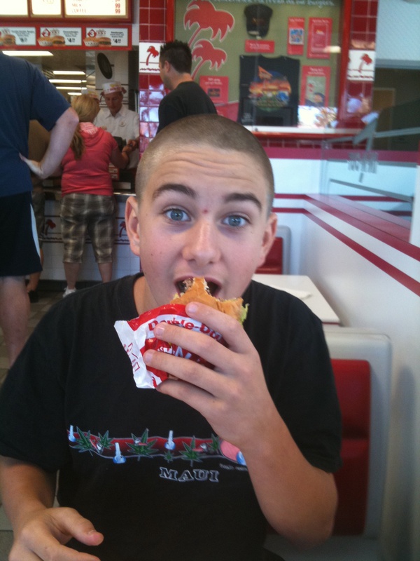 Sports Boy returned home late Thursday night from his travels to his dad’s family in Sweden. 6 weeks later and he’s easily grown another 1/2 inch, his shoe size is up to 9.5 (a full size more than his dad – yay!) and he weighs 114. Still small for a freshman football player, yes, but getting better and with his feet still growing that means he will certainly be taller than his dad.