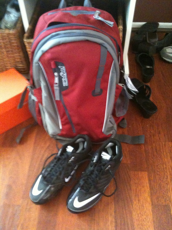 A word on that backpack. When SB started Kindergarten, I bought him an orange & black Jansport backpack. It was too big for him for sure, but he loved it. Carried it during elementary school for at least 3 years. Then he was given a new one by family in Sweden, then he wanted a blue one and over the years he’s carried different ones for school – all of which have ripped & torn & broken before the school year was out. Every last one. Except the Jansport. Old faithful orange was retired from daily use, but became his summer back up for camps and is what he has carried on this flights to Sweden every year. This year it was SO heavily packed with his laptop and a book and PSP and charger chords and lord knows what else. It was heavier than his suitcase! And yet it was FINE. Not a rip or tear in sight for over 8 years! Sure, it looks like hell since the orange has faded to salmon, but it WORKS. So, for high school I decided to treat him to another Jansport. One that will hopefully be his LAST one I have to buy. Don’t ask how much. Or about the price on those gorgeous new size 10.5 football cleats (Nike’s run small and you always want a half size bigger with athletic shoes). Let’s just say that I may need to start selling things again. Hmmmm….what was that I said before that if it’s not moving it goes on Ebay? 🙂