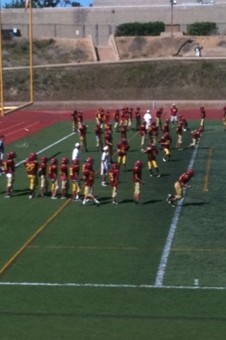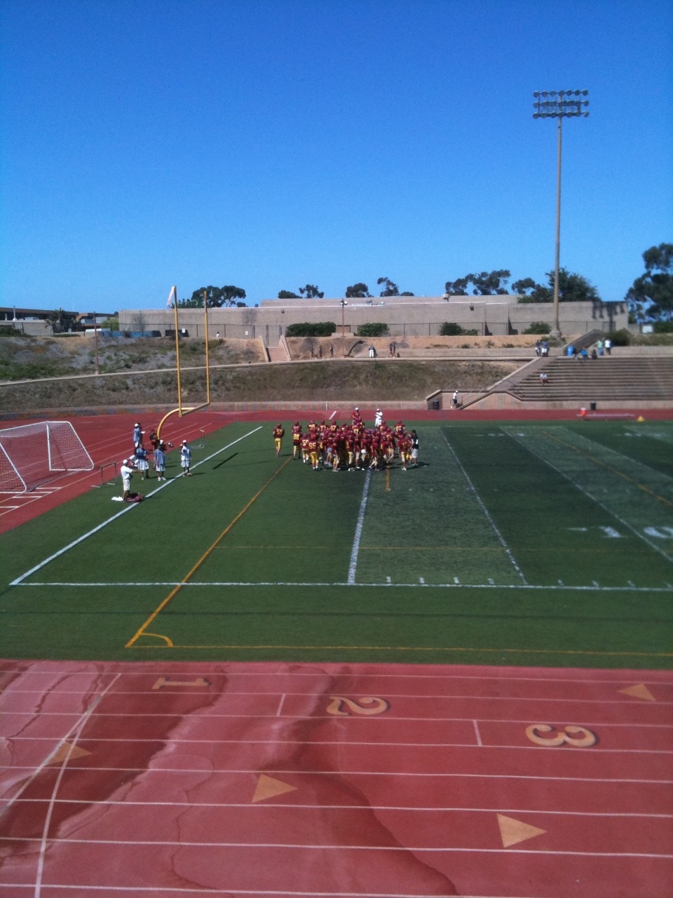 Then SB had his first carry as a running back. And he did his usual dodging and weaving and slashing to gain about 15 yards breaking two tackles along the way. I clapped quietly, but hey, it was an intrasquad scrimmage so it was not the place for a mom to go crazy cheering for her kid, right? So I was well behaved. Then I heard it “Way to go XXXXXX!” (where the x’s represent our last name – pronounced *correctly*!). I looked to my right – and yep – it was our coach all right. Cheering louder for my boy than I was.