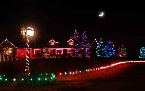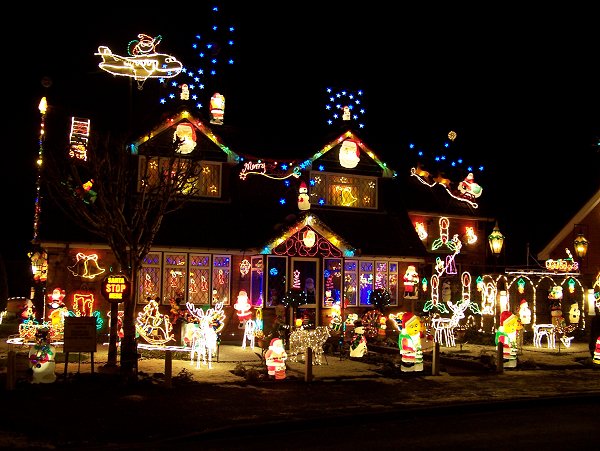 I really need to figure out the proper setting on my camera so that I can take a decent picture of my own house light display, but in lieu of that – I absolutely have to admit that I ADORE even the tackiest of light displays 🙂 Beyond the music (give me the Grinch soundtrack or Andy Williams singing anything & I’m happy), the smells (yes, I have an artificial tree, but I still love the pine/cinnamon/mulberry scent of the season), it is the lights that warm my heart. I LOVE driving through neighborhoods to see displays. I love organized light displays. I just LOVE LOVE LOVE lights!!