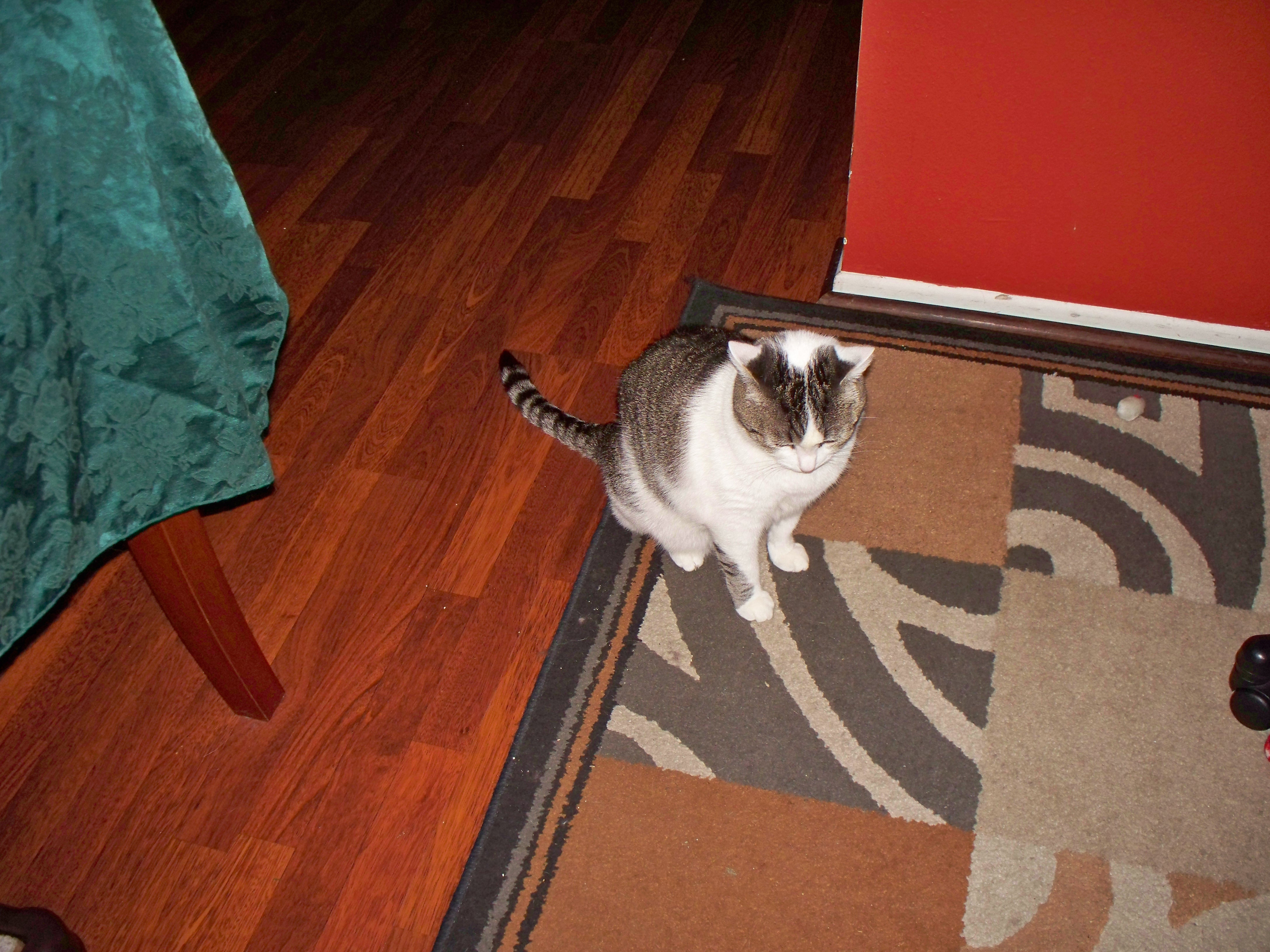 The toilet room is small though, right? So when I go in there and find him lounging on the bathmat in front of the toilet, I shoo him out.