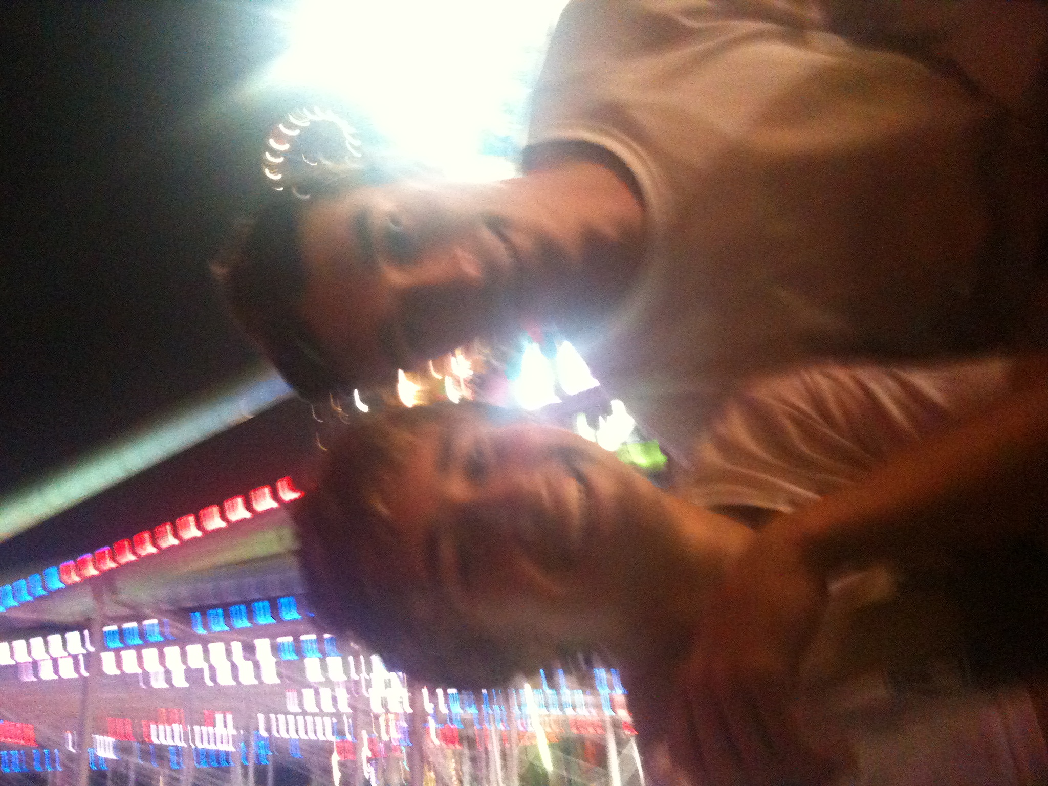 We had initially tried to get on the wheel to time it with the fireworks but given our reaction that would have been useless so I was glad we were off and had plenty of time to get out to the back parking lot to watch the show. Surrounded by car alarms going off with each deep boom πŸ™‚