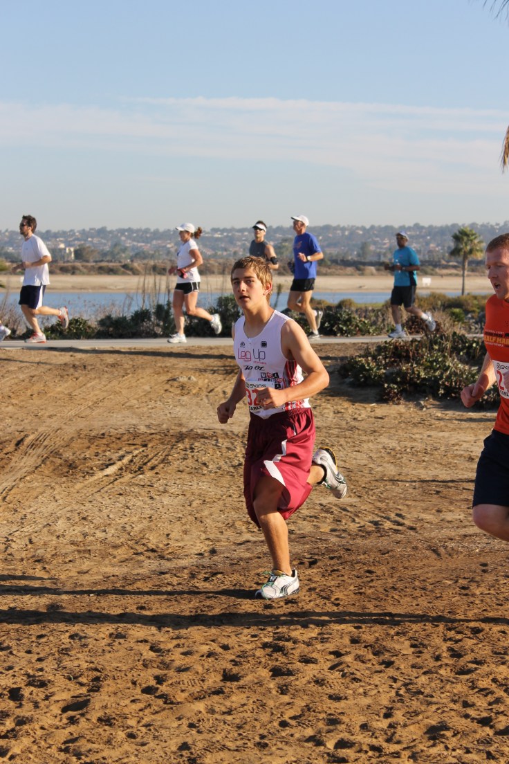 Coming in for the finish - notice the cowbell. That's head cheerleader Alex.