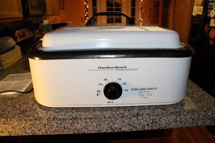 My mom gave me this years ago and while we have used it a few times, just by virtue of it’s size, it needs to be stored in an upper cabinet out of the way which means….it’s out of the way and we forget we have it! But it’s perfect for tomorrow. It will cook the turkey in almost half the time (it will be done faster than the green beans!) and it frees up the oven for other goodies. And since I only have one oven (grumble), I am very happy that I can use this, the crock pot for the beans, the stove for mashed potatoes and keep everything spread out nicely around the kitchen.