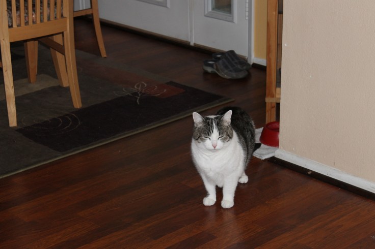 Now, please go away.while we settle in for our morning nap. It’s rainy and cold out there. Even the birds have bailed so we’re going to take the hint