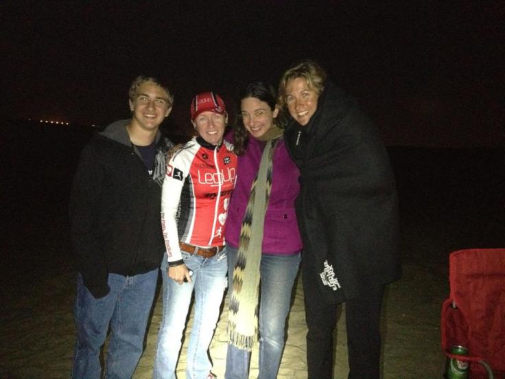 We had a birthday bonfire for Renee last night at Fiesta Island after a bike time trial. Coach T needed 15 and I to help with keeping time so since we were all out there together we got pizzas and birthday bundt cake and relaxed by a fire afterwards. It was a tad cold 🙂