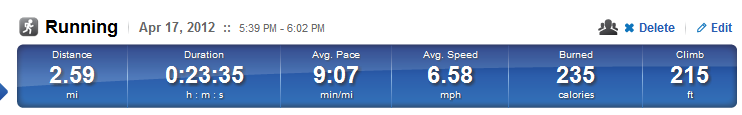 Tonight, I did run faster. In fact, I set a PR (Personal Record) for my typical 2.6 mile hilly run around my neighborhood. I dug back into my activities and found this one to be the oldest version of this particular route:
