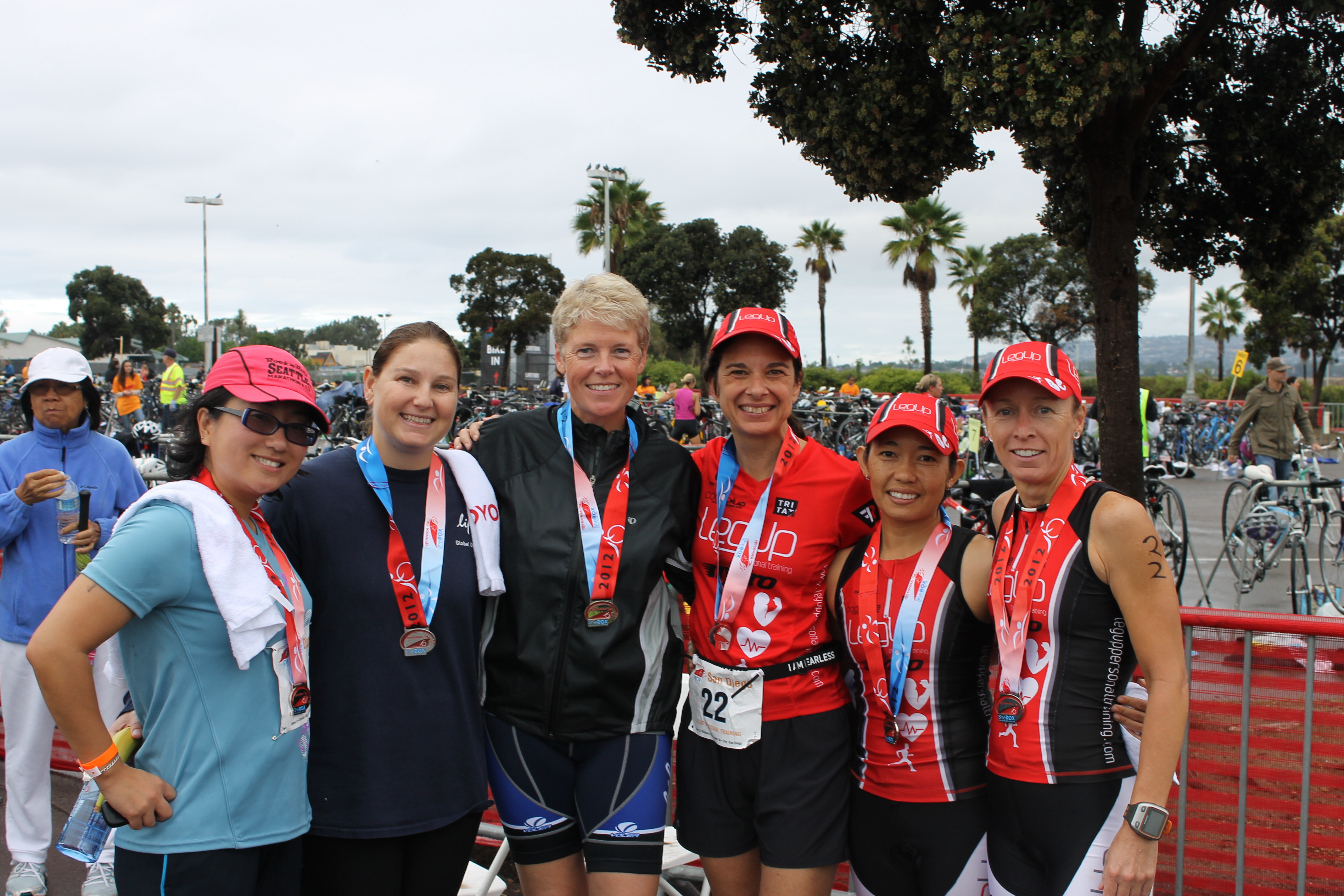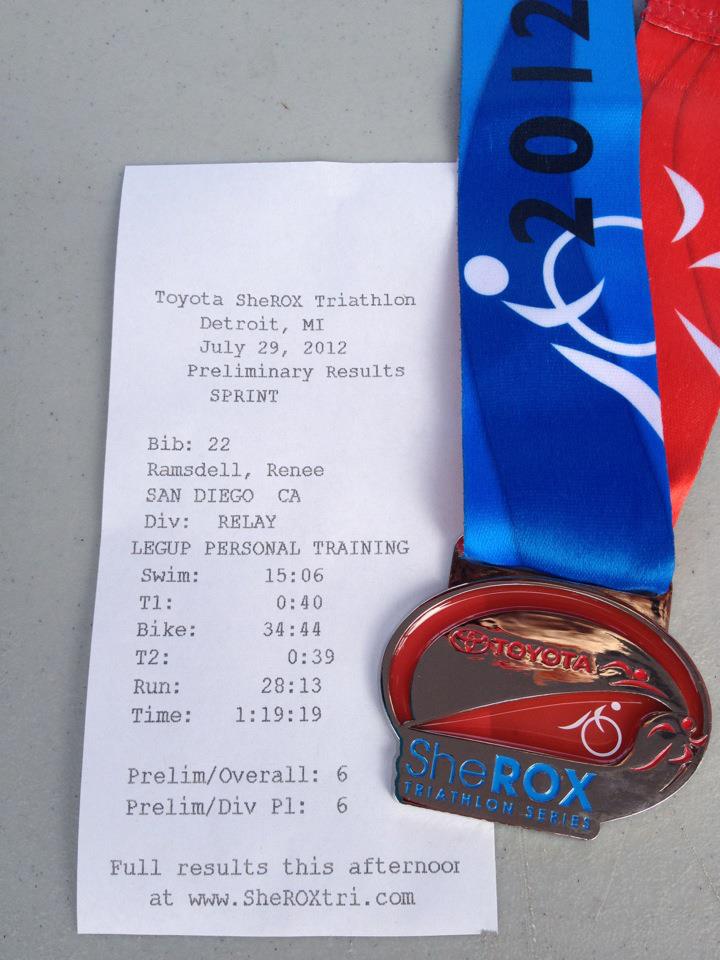 We had some friendly – and we found out, studly – competition in the event because our other usual LegUp team racer was inspired by our race entry to throw together a team of bad ass athletes from her work. Their swimmer? We think she was the second person out of the water. I mean – it was stupid fast how quickly she ran into transition! Right there I knew we were toast because even though we both had our Renee’s riding bikes and I knew that our Renee could make up a lot of ground and that Eve is a lot faster swimmer than she thinks – there was NO WAY I could keep up with their runner who normally does half marathons.