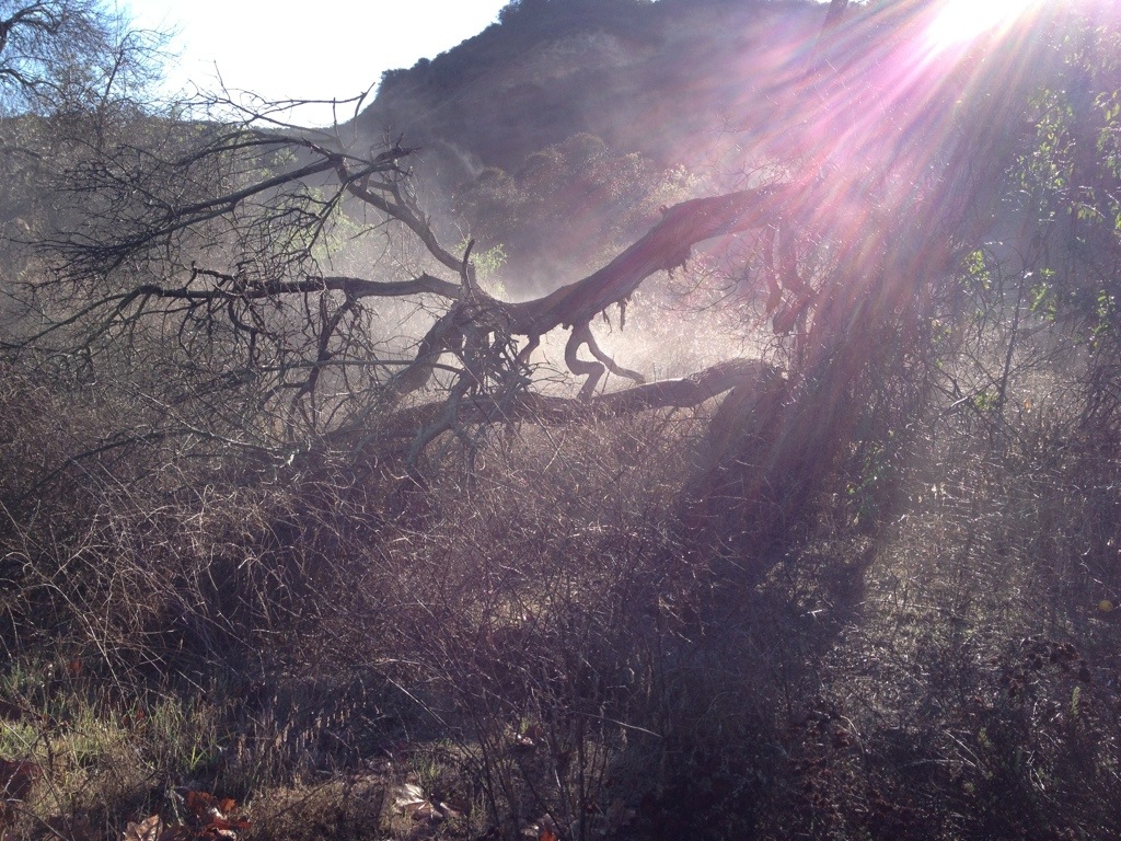 December 30th was a day of off and on showers so I had to take a break from staining. I did take the time for a typical longer Sunday morning trail run. Couldn’t join Renee in her 105 minute run at Lake Hodges, but I did throw my new Camelback on for a trial outing and go for an easy 5 mile jog over 60 minutes. It was around 48 when I started running and I just had to stop now and then to admire the misty landscape.