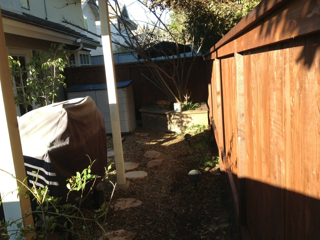 Even though I only had two final sections to stain, they took a long time! This photo was taken in deep afternoon shadows. I had started at 9am! I did have to take breaks to direct light removal and match up light strands to boxes, but still. For whatever reason, it was slow going.