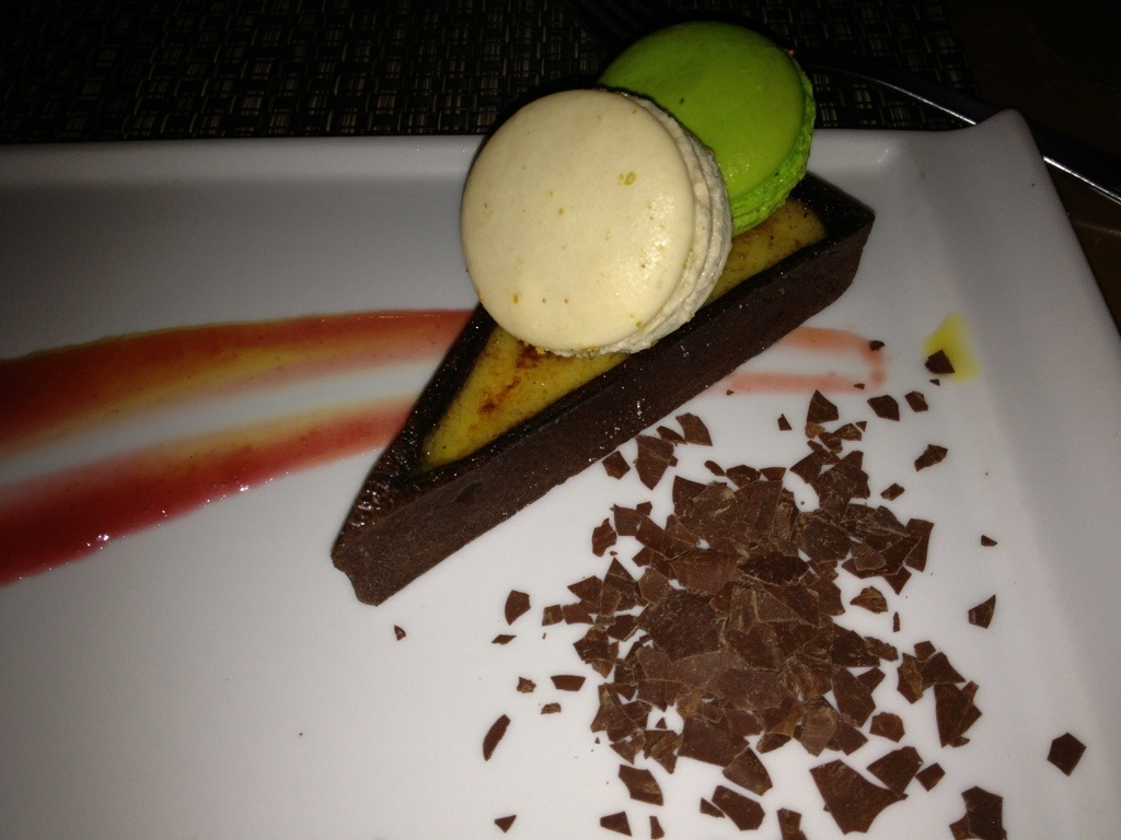 Macaroons topped the creme brulee tucked in a chocolate crust. Eh.