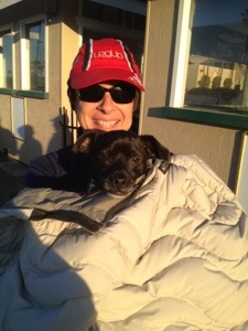 When we met up with Tanja and her dogs, the one I was going to run with – Miles – was just shivering! Eve had to take off her jacket and wrap him up for a bit to get him to stop.