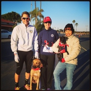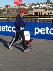 No, I didn’t get a dog (oh, how THAT would traumatize my spoiled kitties!!) But, I did borrow a dog to participate in another Just For Fun 5k event – The Petco K9 5K that was held Sunday at the racetrack just by my house. As you can tell from the pictures – it was COLD. We’ve been under frost warnings for the last three night/mornings and they were not kidding about it.