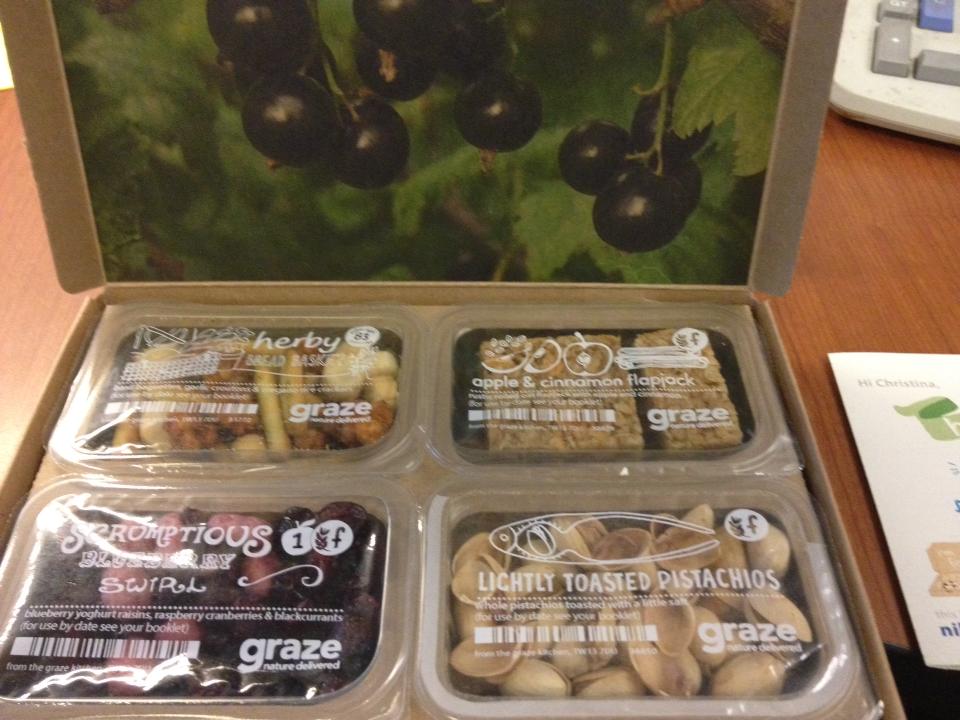 The first was the result of a facebook recommendation – graze – a healthy snack company that ships out perfectly proportioned snack packs each week for just $5. This was the first box I received: