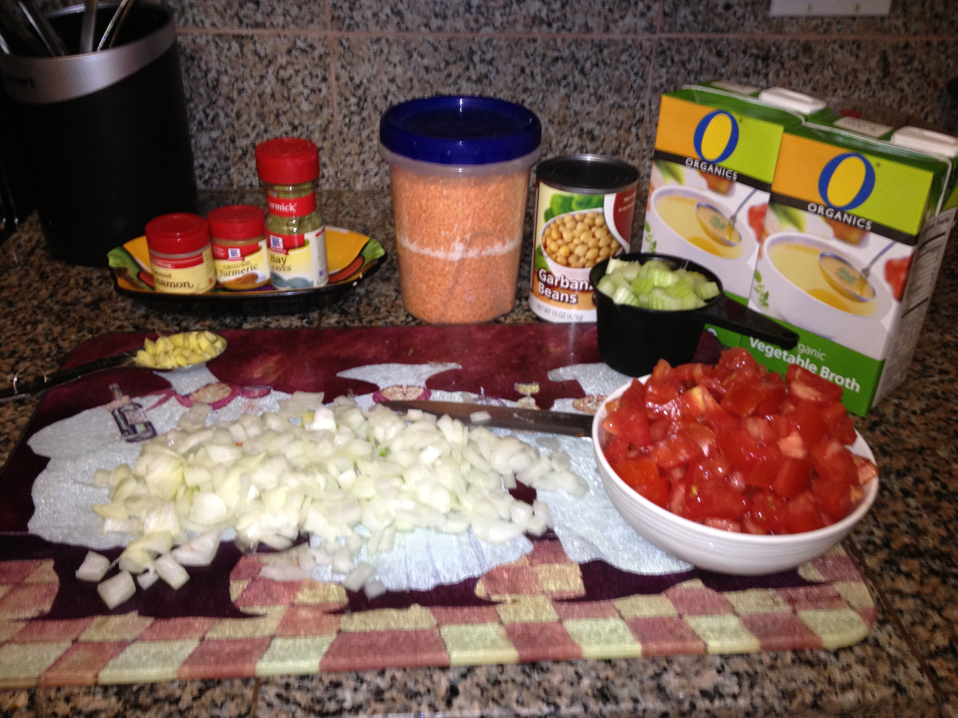 A mixture of organic and not quite organic ingredients. I had to go with what I already had. I did have to make a trip to Jimbo’s to get the red lentils.