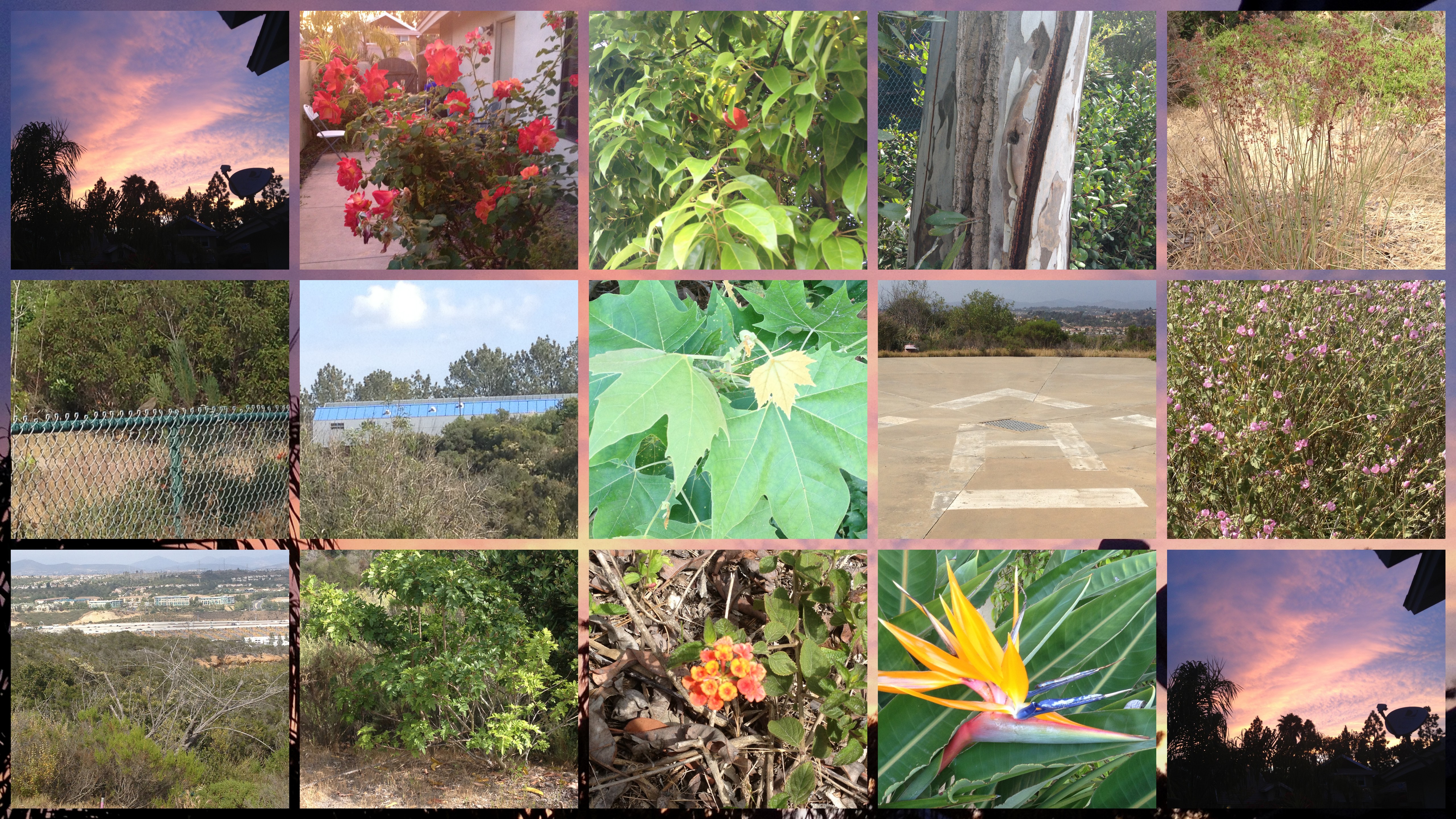 So today I was happy that the rain had stopped, and I could take another walk. I mixed in a few photos from my house over the weekend when we had an amazing sunset. I loved the glow from the sky on the roses in the side yard.