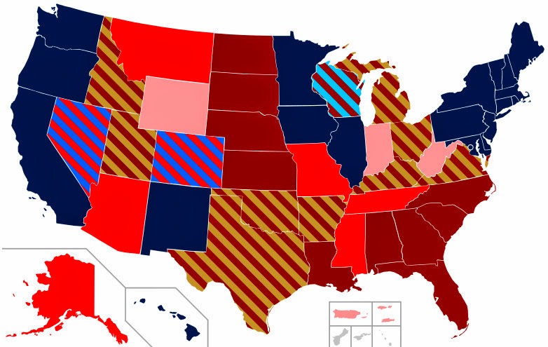 By the end of 2014, it is entirely possible to have more than half the states in the navy column.