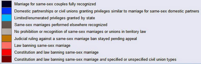 19 states with full recognition. 9 more with current stays delaying judicial rulings that have stricken down existing bans.